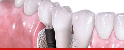 Implantate sind künstliche Zahnwurzeln die in den Kiefer eingesetzt werden. Sie bestehen aus Titan oder Keramik. Nach einer Einheilphase von 3-6 Monaten in der das Implantat mit dem Knochen verwächst, kann dann die endgültige Versorgung